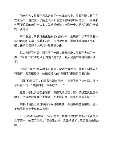 有天夜里,周鹏飞去废品收购站的时候,发现有个小青年拿着一