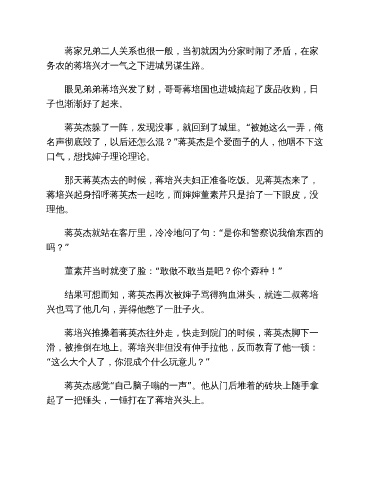 蒋培兴起身招呼蒋英杰一起吃,而婶婶董素芹只是抬了一下眼皮,没