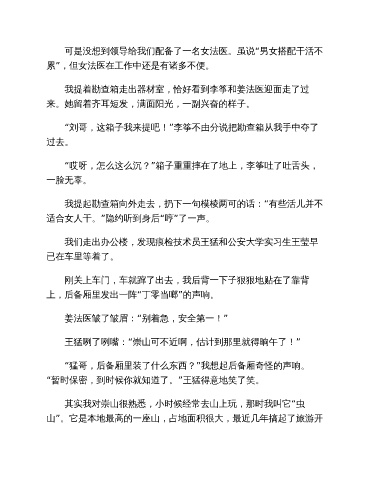 可是没想到领导给我们配备了一名女法医。虽说“男女搭配干活不