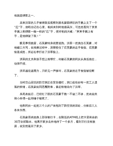 原来洪翠的儿子被绑架后观察到那名蒙面绑匪的手腕上文了一个