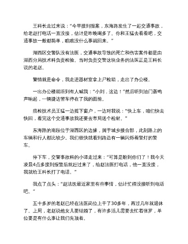 王科长走过来说:“今早接到报案,东海路发生了一起交通事故,
