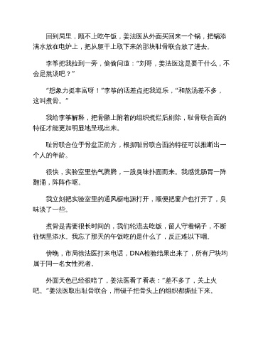 傍晚,市局徐法医打来电话,DNA检验结果出来了,所有尸块均