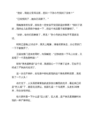 “您好,我是公安局法医,想问一下孙小丹找到了没有?”