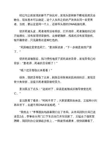 吻合。现在基本可以确定,这个人头和之前的尸块来自同一名受害