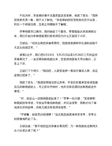 贺老师关系一般,我不太了解他。”宋老师的回答显然有些言不由衷,