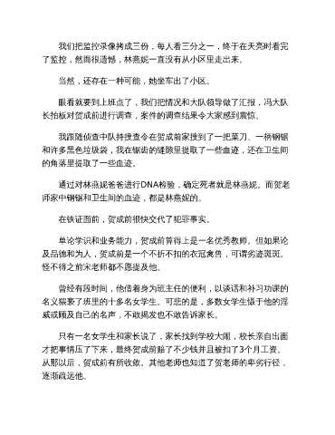 通过对林燕妮爸爸进行DNA检验,确定死者就是林燕妮。而贺老