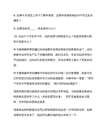 学过的知识,总结自己的想法和观点,并且在课堂上提出了更多的问