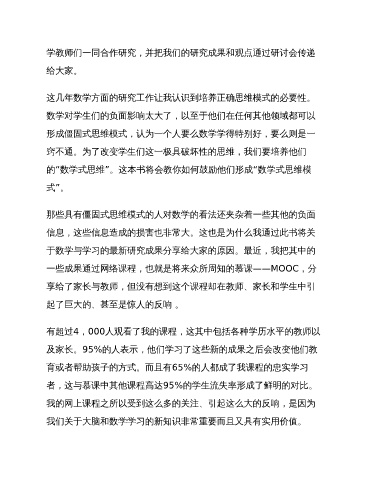 于数学与学习的最新研究成果分享给大家的原因。最近,我把其中的
