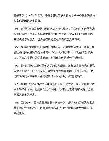 (4)这些男孩自己发现了图形方块的变化规律,而且他们的解题方法