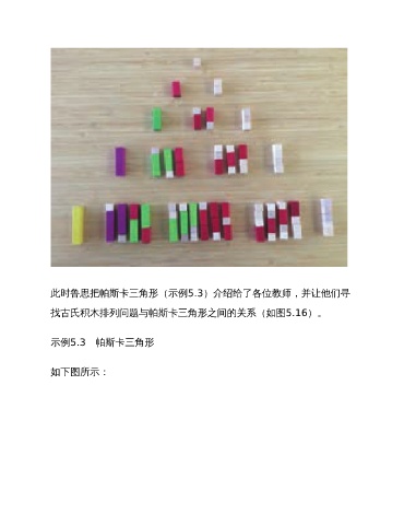 此时鲁思把帕斯卡三角形(示例5.3)介绍给了各位教师,并让他们寻