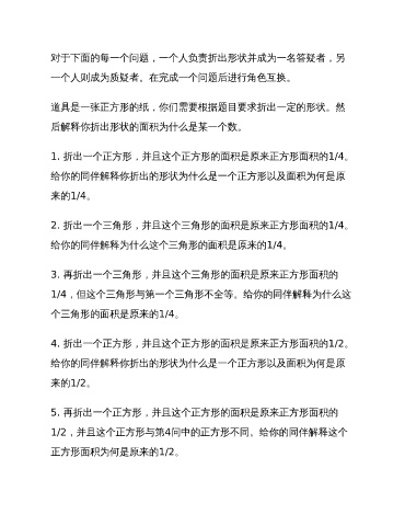 对于下面的每一个问题,一个人负责折出形状并成为一名答疑者,另