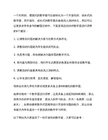 一个封闭的、僵固式的数学题可以被转化为一个开放性的、成长式的