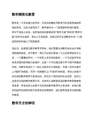 赋”的学生区别开。更令人不安的是,美国已经完全把数学作为一门表