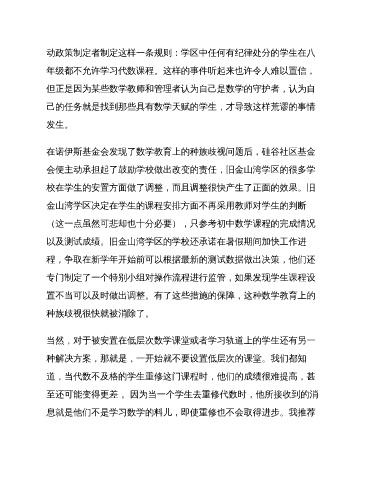 当然,对于被安置在低层次数学课堂或者学习轨道上的学生还有另一