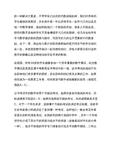 一样)。低水平班级的同学专门准备应付低水平的数学测试,三年以