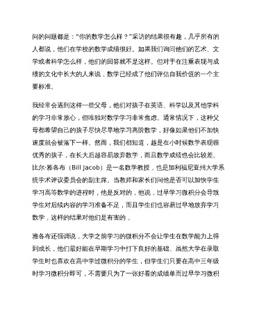 雅各布还强调说,大学之前学习的微积分不会让学生在数学能力上得
