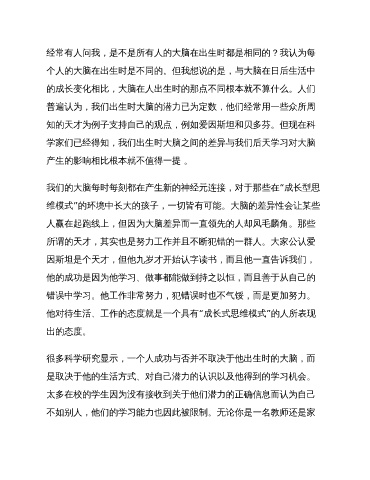 很多科学研究显示,一个人成功与否并不取决于他出生时的大脑,而