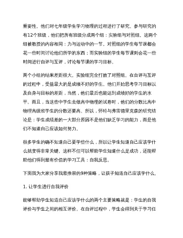 能够帮助学生知道自己应该学什么的两个主要策略就是:学生的自我