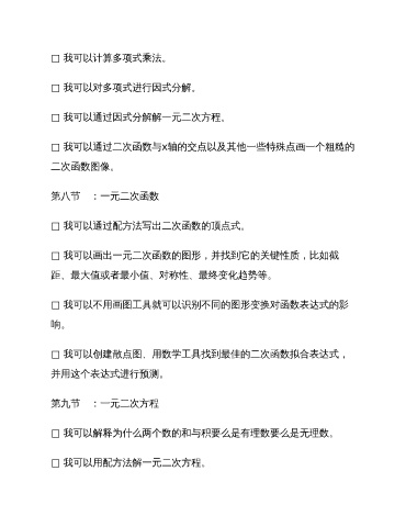 □ 我可以画出一元二次函数的图形,并找到它的关键性质,比如截