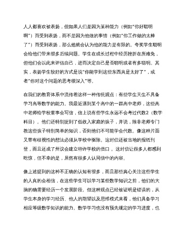 了”)而受到表扬,那么他就会认为他的能力是有限的。夸奖学生聪明