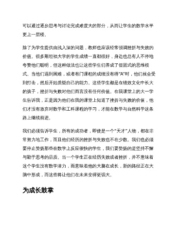 除了为学生提供由浅入深的问题,教师也应该经常强调挫折与失败的