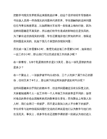把数学与现实世界联系起来固然是好事,但这个需求却经常导致教科