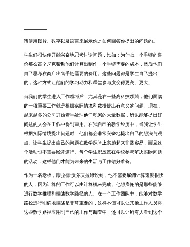 自己思考在商店出售手链需要的费用。这些问题都是学生自己提出