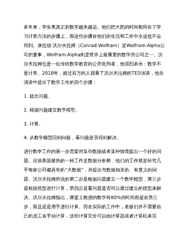 决。沃尔夫拉姆指出,课堂上教授的数学有80%的时间都是在第三