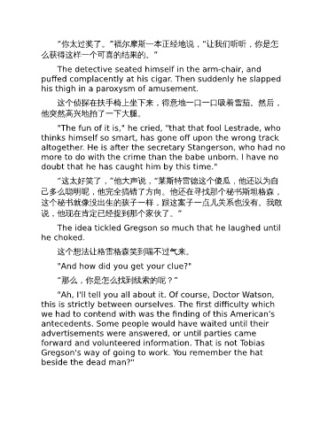 “这太好笑了,”他大声说,“莱斯特雷德这个傻瓜,他还以为自