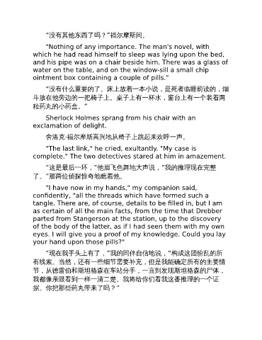 “这是最后一环,”他眉飞色舞地大声说,“我的推理现在完整