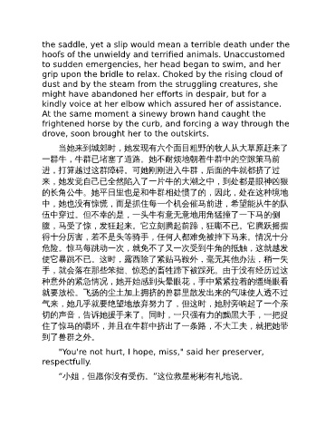 使它暴跳不已。这时,露西除了紧贴马鞍外,毫无其他办法,稍一失