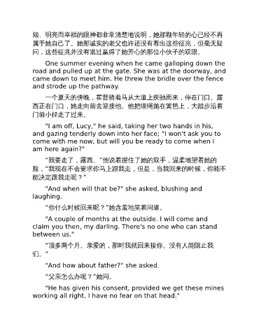 “我要走了,露西。”他说着握住了她的双手,温柔地望着她的