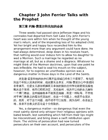 杰斐逊·霍普和他的伙伴们离开盐湖城已经有三个星期了。每当想