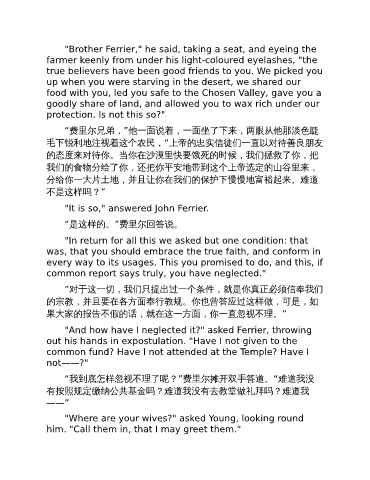 毛下锐利地注视着这个农民,“上帝的忠实信徒们一直以对待善良朋友