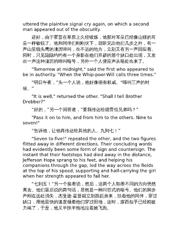 “明日午夜,”头一个人说,他好像很有权威。“啼叫三声的时
