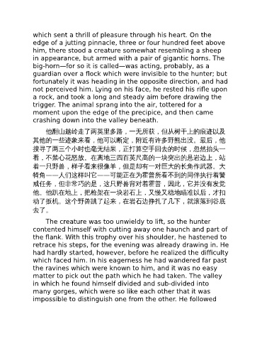 动了扳机。这个野兽跳了起来,在岩石边挣扎了几下,就滚落到谷底