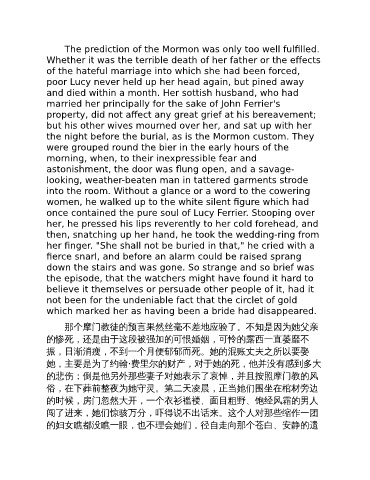 的悲伤;倒是他另外那些妻子对她表示了哀悼,并且按照摩门教的风