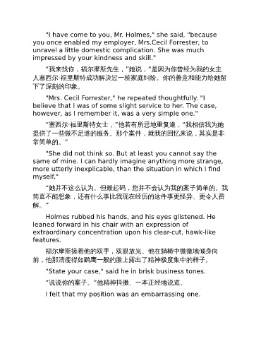 “我来找你,福尔摩斯先生,”她说,“是因为你曾经为我的女主