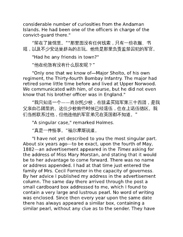 籍,以及不少安达曼群岛的古玩。他曾是那里负责监禁囚犯的军官。