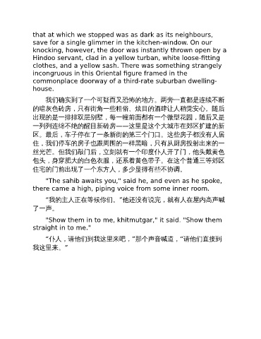 丝光芒。但我们敲门后,立刻就有一个印度仆人开了门,他头戴黄色