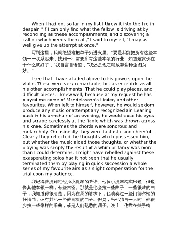 我记得曾提到过他拉小提琴的造诣。他拉小提琴确实出色,但也