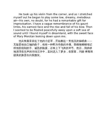 得他那瘦削的手、诚恳的脸庞,还有上下飞舞的琴弓。然后,我静静