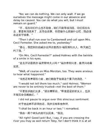 “是去拜访塞西尔·福里斯特夫人吗?”福尔摩斯问道,眼里闪动着