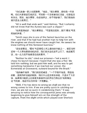“结果圆满就好,”福尔摩斯说,“可是我没想到,那只‘曙光’号竟
