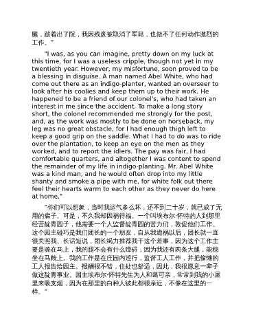做这靛青事业。园主埃布尔·怀特先生为人和蔼可亲,常常到我的小屋