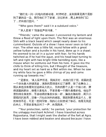 “‘是朋友。’来人应声答道。我揭开灯,向他们照了照。前面的是