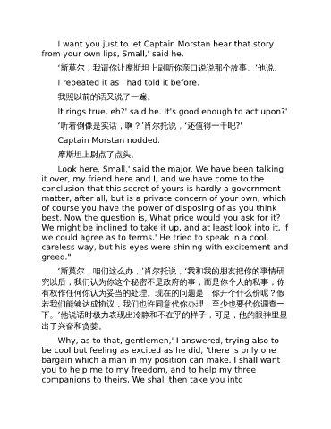 ‘斯莫尔,我请你让摩斯坦上尉听你亲口说说那个故事。’他说。