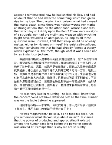 常。我记得福尔摩斯嗅过死者的嘴唇,我确信他发现了一些东西,让