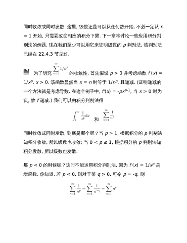 知积分收敛, 所以级数也收敛; 当 0 < p ≤ 1, 根据积分的 p 判别法知