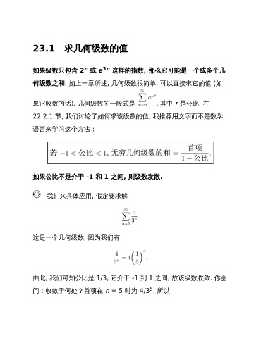 何级数之和. 如上一章所述, 几何级数很简单, 可以直接求它的值 (如